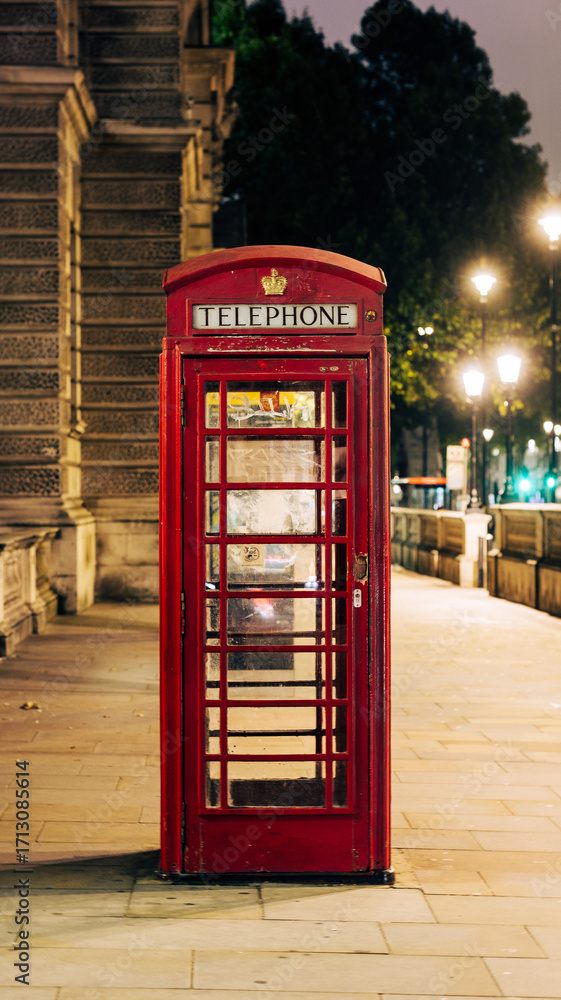 Iconic Red Telephone Booth at Night in London