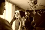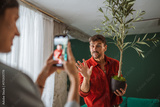 Man posing with olive tree for social media content