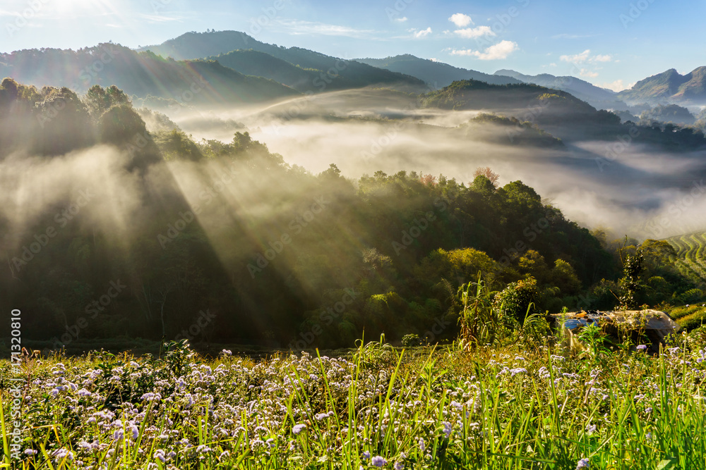 Tea plantation beautiful landscape famous tourist attraction at Doi at Doi Ang Khang, Chiang Mai, Thailand