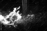 Chinese hungry ghost festival burning joss stick candle joss fake paper money flame fire smoke ash