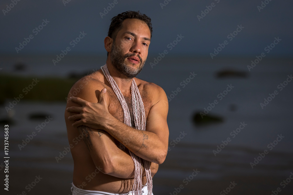 Man wearing white dancing in the beach on Cape Cod during the pi