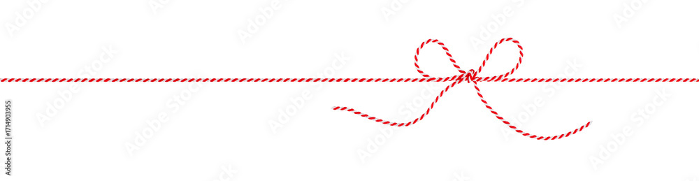 Red and White String Rope with Bow Isolated on White and Png Transparent Background