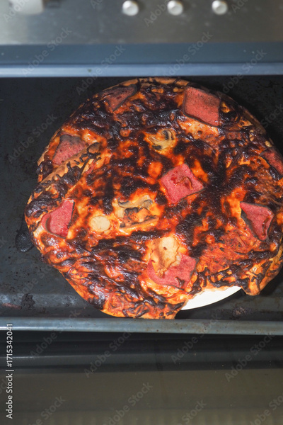 Pizza burned in oven during cooking process