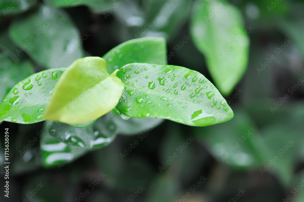 ficus pumila or climbing fig or MORACEAE and rain droplet