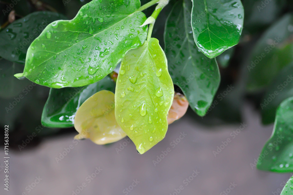ficus pumila or climbing fig or MORACEAE and rain droplet