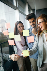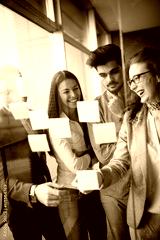 Collaboration and analysis by business people working in office