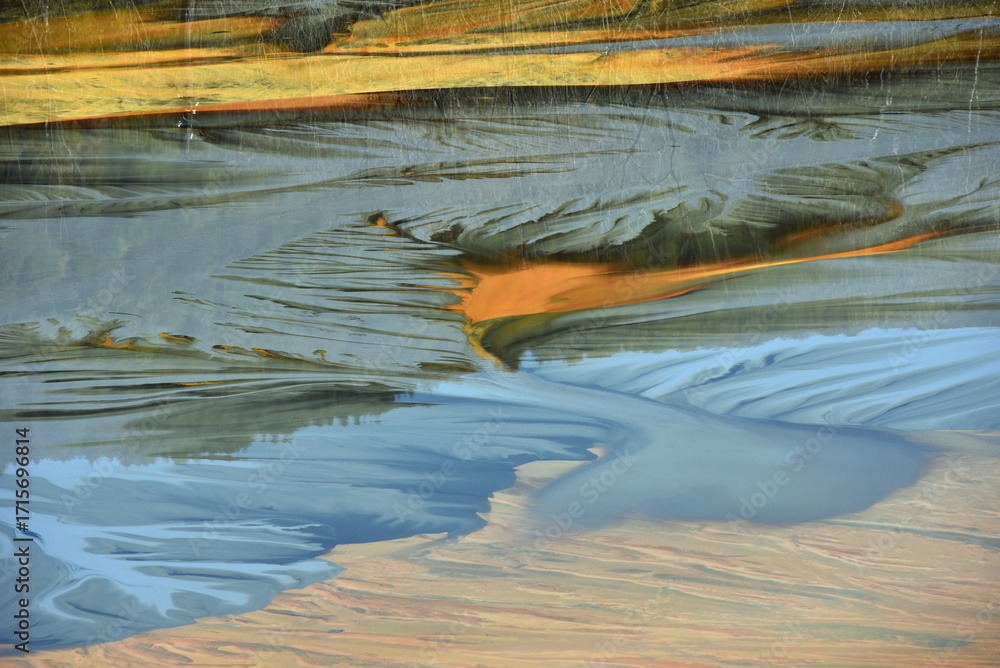 Surreal natural patterns. Residual gold mining leach waters polluting the environment