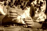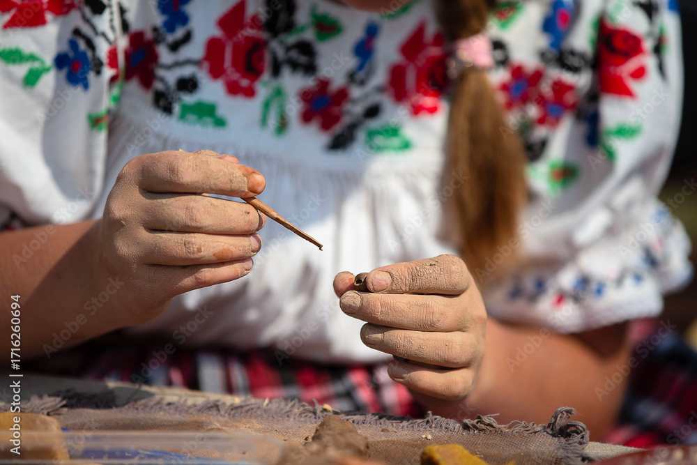 Creation of traditional ceramics with experienced hands in a bright cultural Slavic festival