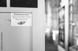 Shallow focus of a Do Not Touch sign seen in a wild bat enclosure located in a British cathedral. The structure is used to monitor the bat population of the famous cathedral.