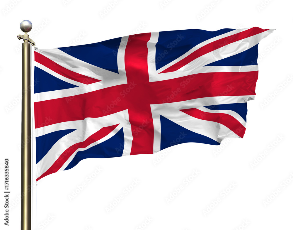 Transparent Background Cutout Union Jack Flag Of United Kingdom Waving In The Wind On A Beautiful Summer Blue Sky