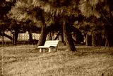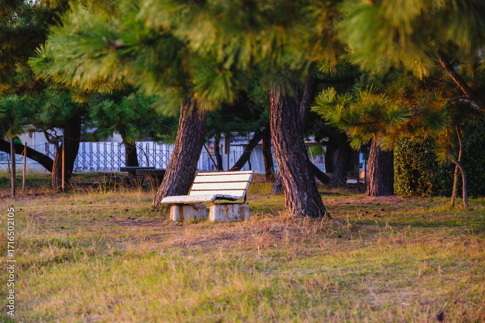 渋川海岸、ノスタルジックな雰囲気のベンチ、岡山、日本