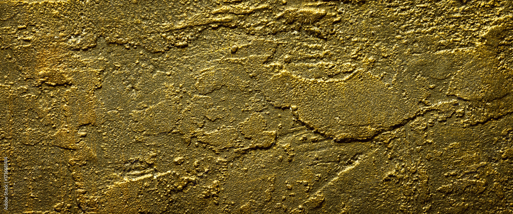 Distressed gold painted plaster wall background