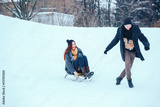 young couple in love enjoying a winter vacation and having fun on a snowy winter day.