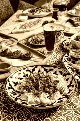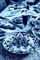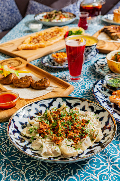 A colorful array of traditional meals and drinks entice guests at a lively dining event