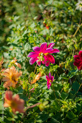 Colorful flowers blossom vibrantly, creating a joyful vista in a lush garden on a sunny day