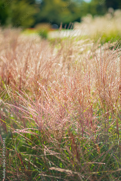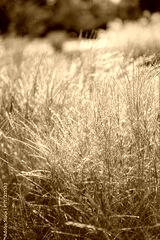 Soft golden grasses catch the sunlight, creating a peaceful scene in the lush meadow, full of life