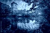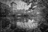 Calm autumn sunrise of Wolkersdorf Castle on the shore of castle pond. Colorful morning cityscape of Wolkersdorf town, town in the district of Mistelbach in the state of Lower Austria, Europe.