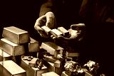 Male hands holding Bank gold bars, Gold Nuggets. Gold reserv holdings concept. Savings and investments, business and finance