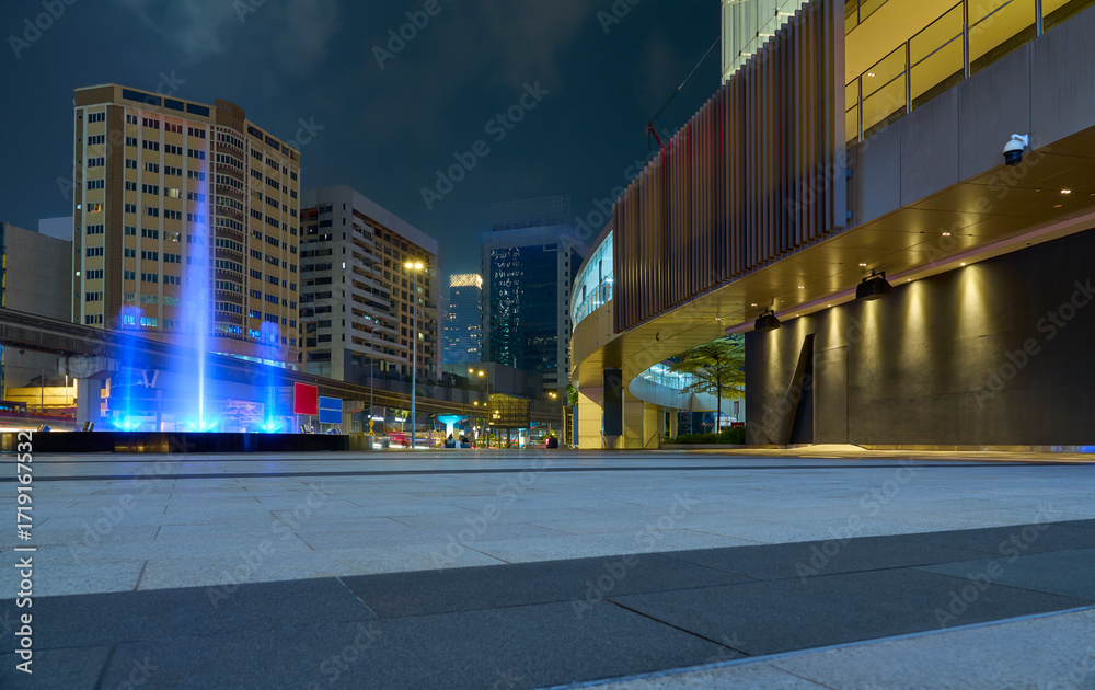 Kuala lumpur cityscape at night with illuminated fountain