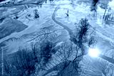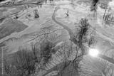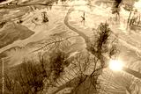 Aerial view of colorful contaminated cyanide residuals waters from gold mine. Abstract nature pattern