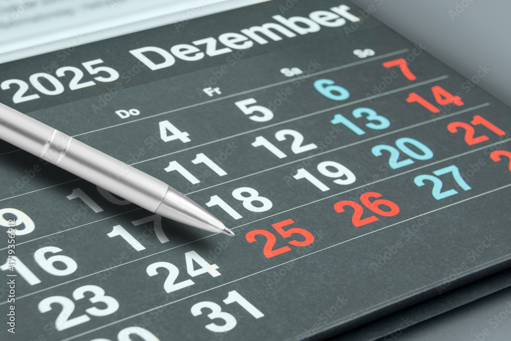 Deutscher Kalender Monat Dezember 2025 Feiertage Weihnachten und Silvester