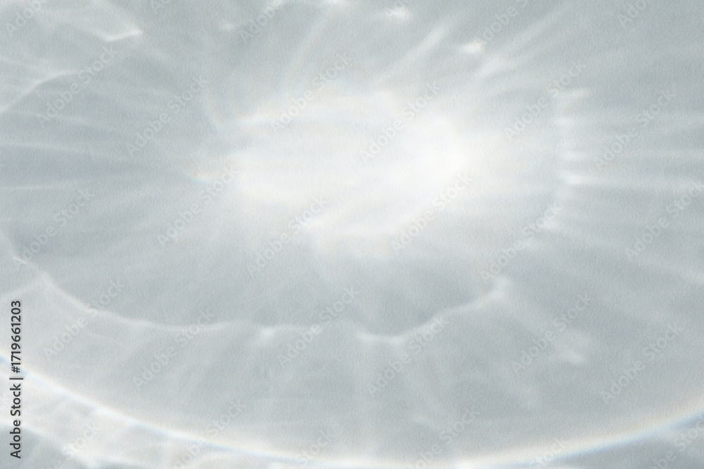 Abstract shadows background from pouring sunlight from glass top view. Natural caustic background from light glare and shine reflection effects for product presentation.