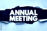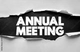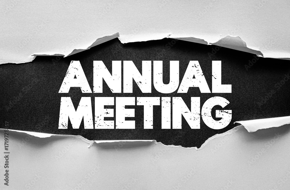 ANNUAL MEETING bold distressed text on ripped paper with torn look. Concept for corporate event, conference, company update, business gathering, and office seminar
