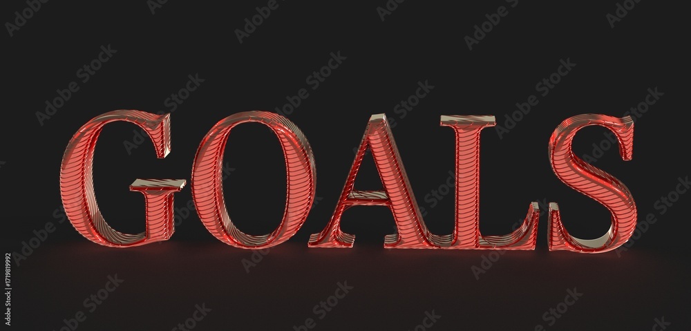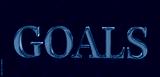 Motivational image featuring the word GOALS in bold, red 3D lettering against a dark backdrop.