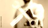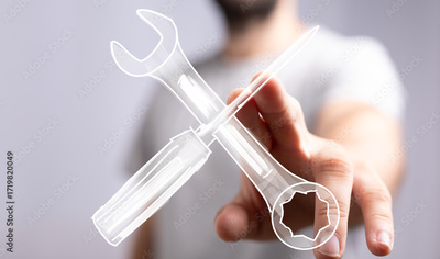 High-quality stock photo of a hand holding digital tools, ideal for repair, maintenance, and tech support.