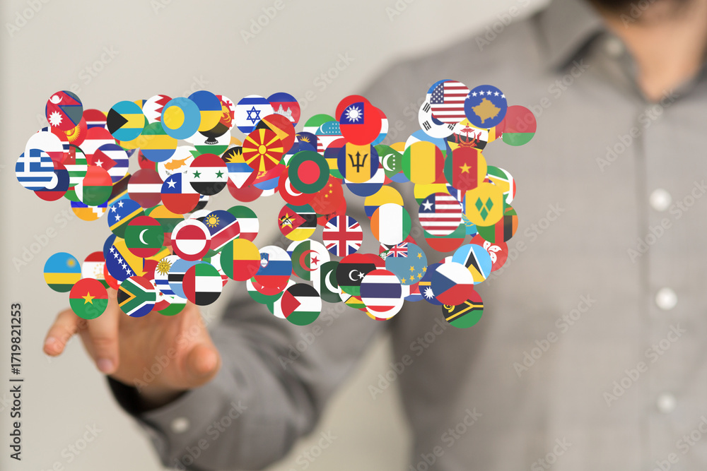 Image of interconnected flags symbolizing international collaboration and global connections.