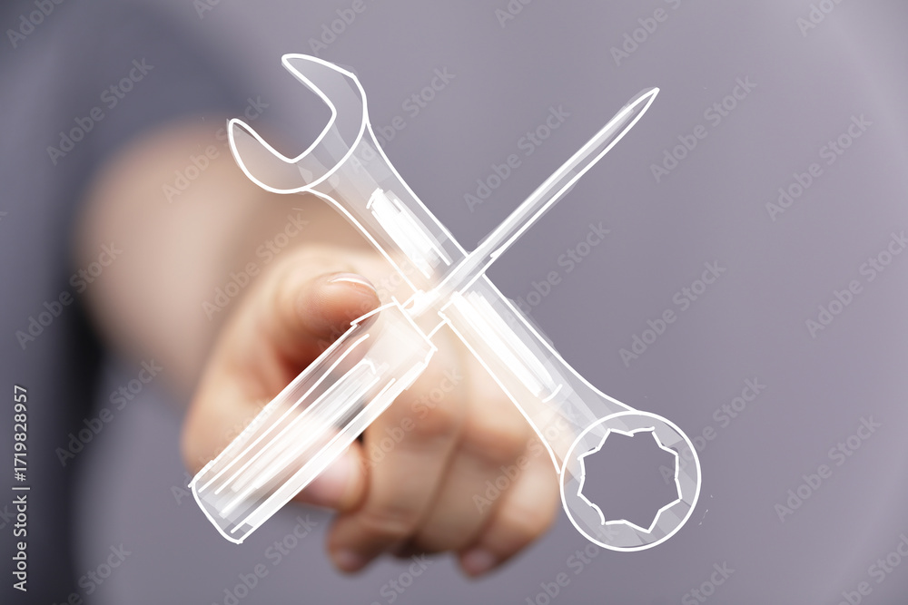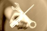 Digital illustration of tools, repair, maintenance, solution, problem solving, service, help, support, technology, fixing.