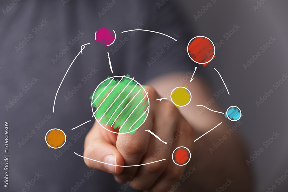 SEO-friendly image of a hand interacting with a colorful network diagram, ideal for business, strategy, and planning concepts.
