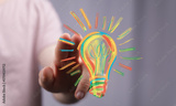 Bright colorful lightbulb idea. Innovation, creativity, solution concept. Stock photo.