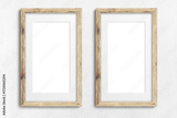 2-piece wooden frame mockup, standing on wood, 3d render, 2-piece mockup, realistic design