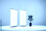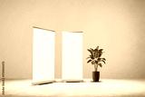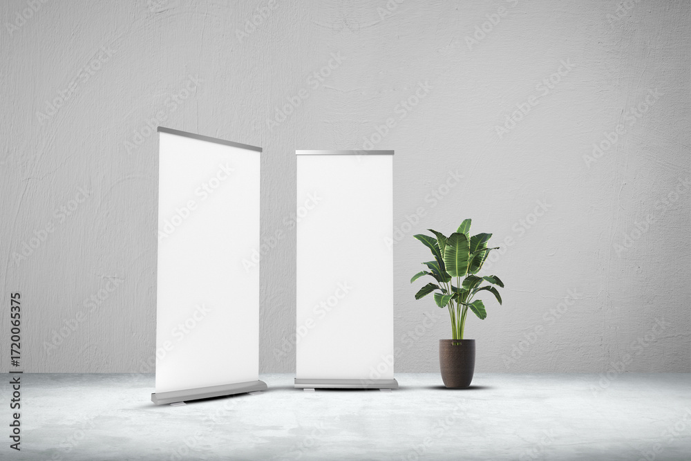 Empty rollup banners stand. Blank template. Exhibition stand roll-up banners mockup.