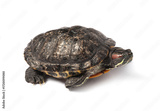 Beautiful turtle (Red-eared slider) on white background