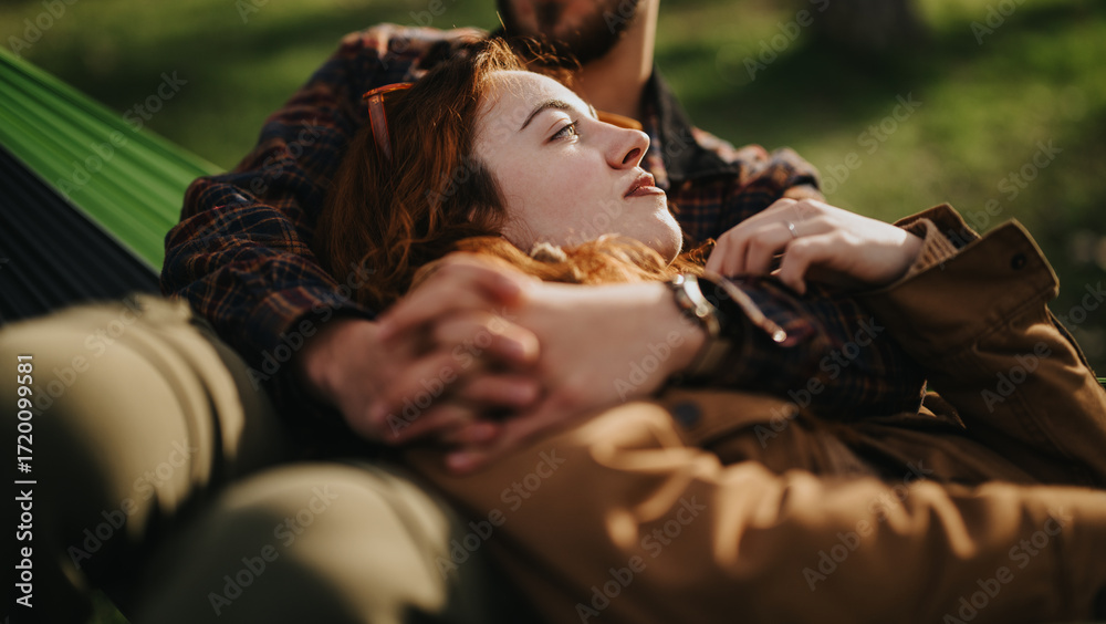 A serene moment shared by a couple relaxing in nature, enjoying each other's presence.