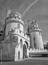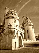 Chateau de Pierrefonds romanticized french medieval architecture with imposing towers and battlements, Oise, France
