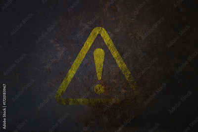 Abstract grunge background design, warning system banner with yellow black caution or alert line, chains and warning sign illustration