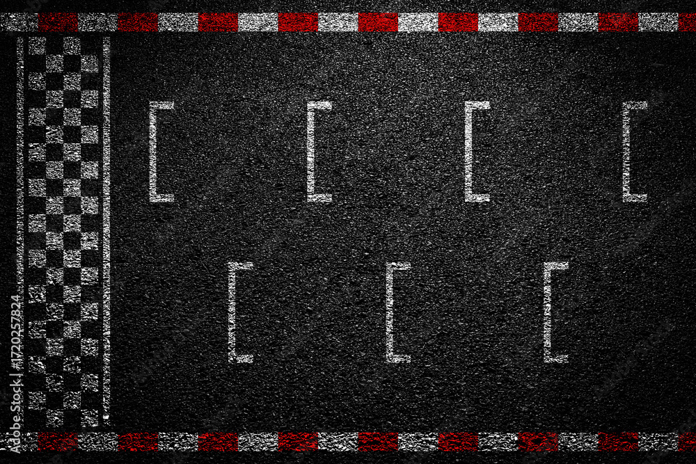 Race Track. Start and finish line racing. Start or finish on car race. Grunge textured on the asphalt road. Vector illustration.