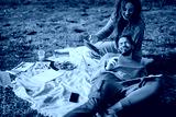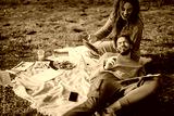 Cheerful couple outdoors enjoying a sunny day by painting together on a blanket surrounded by art supplies. The atmosphere radiates creativity, relaxation, and togetherness in a nature-filled setting.