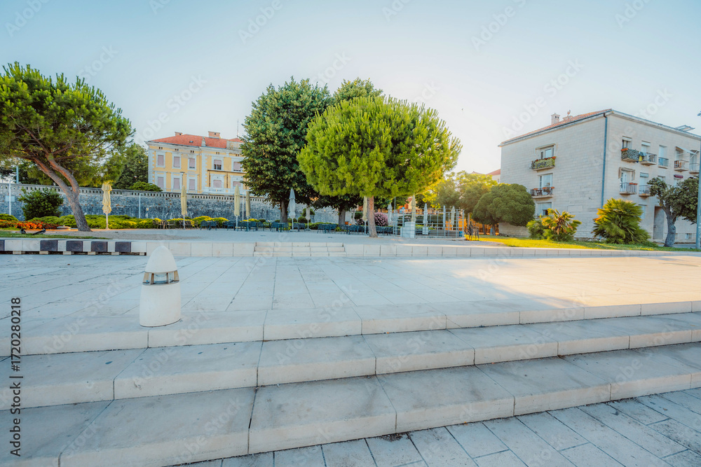 Zadar, Croatia. The old streets of Zadar and the coast and pier at sunrise