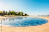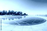 Zadar, Croatia. Old town street of Zadar with the Greeting to the Sun monument, Zadar skyline and sea organ.