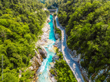 Amazing view of Soca river and Napoleon's bridge near Kobarid (Caporetto) Slovenia