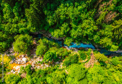 Soca river gorge in Slovenian Alps. Great Soca Gorge or Velika korita Soce, Triglav National park, Slovenia