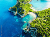 Porto Timoni bay with twin beaches and turquoise waters and sand beach on Corfu in Greece in Afionas region