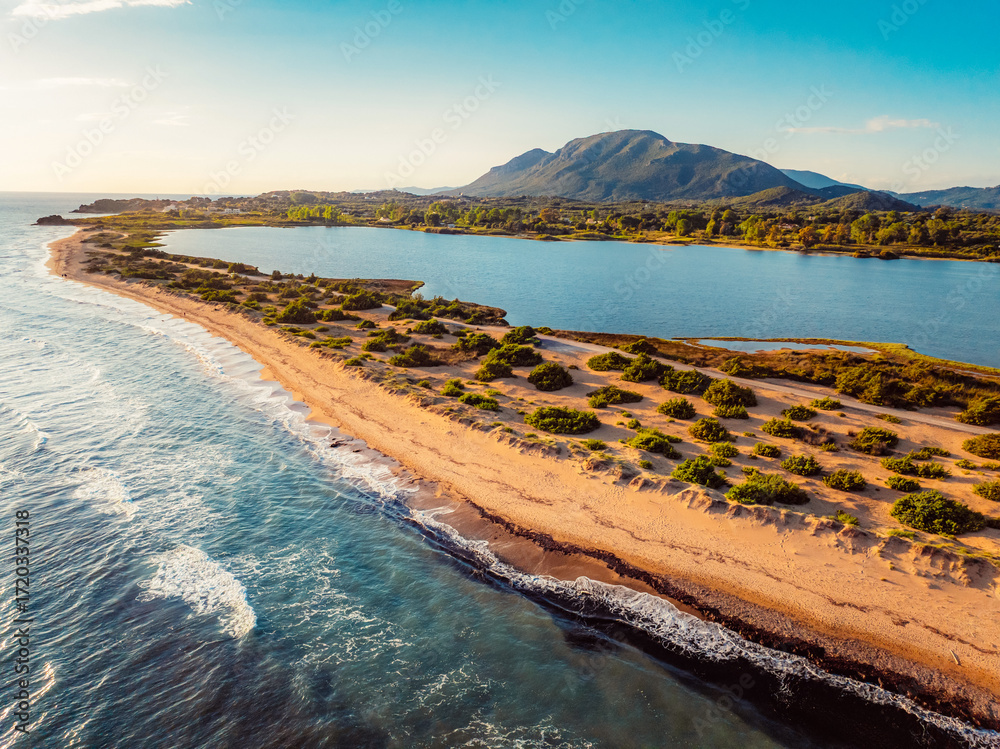 Ionian Islands Corfu in Greece. View of the breathtaking Halikounas Beach and Lake Korission.