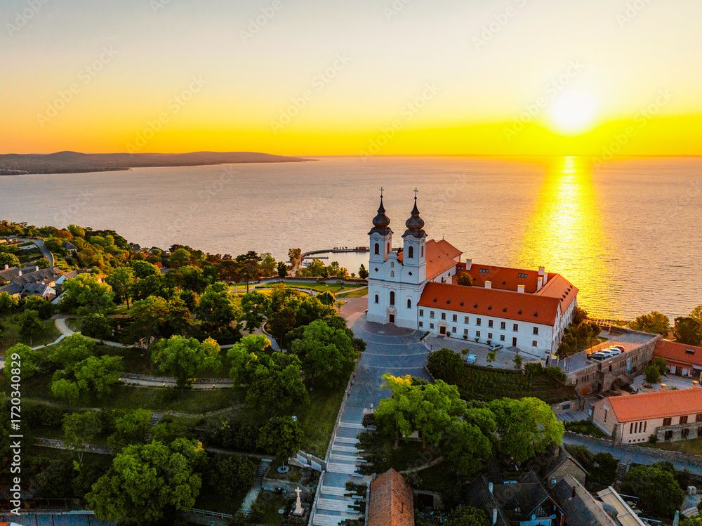 Tihany in Hungary. Benedictine Monastery of Tihany Abbey with Lake Balaton.