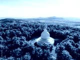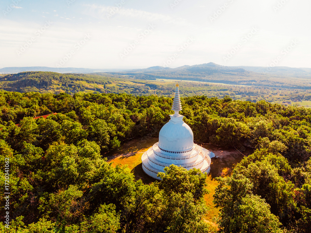 The snow-white Zalaszanto Peace Stupa, a Buddhist building and religious center near Lake Balaton in Hungary