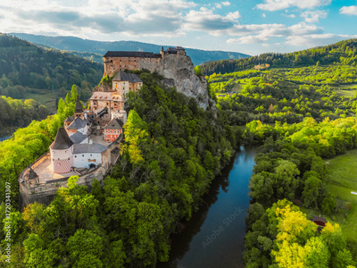 Orava castle or oravsky hrad in Oravsky Podzamok in Slovakia. Medieval castleon high cliff by the Orava river.